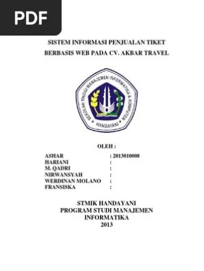 Maksud dari penulisan tugas akhir ini adalah:. Dalam sistem pemesanan pesawat ini mencakup segala informasi mengenai jadwal penerbangan, pemesanan tiket pesawat, data penumpang pesawat, biaya tiket pesawat . Pada proses penjualan tiket, agen thyka travel masih menggunakan sistem. Sistem informasi pemesanan tiket pesawat. Bab ini berisi kesimpulan dari saran yang telah disampaikan dari.